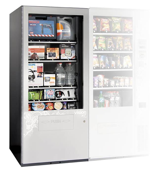 Las máquinas Vision ofrecen soluciones completas de vending de snacks & foods y de otros productos garantizando la optimización de todo el espacio disponible. Fabricadas con los materiales más robustos, estos modelos incorporan un ascensor de entrega de producto de grandes dimensiones, un sistema de extracción sin espirales patentado por Jofemar y todos los avances del vending actual como lectores de billetes y telemetría. Además, se adaptan a prácticamente cualquier producto, ya que todos los canales se amoldan al tipo de envase que se quiera ofrecer, lo que permite incrementar notablemente las capacidades al utilizar toda la superficie de la bandeja.
